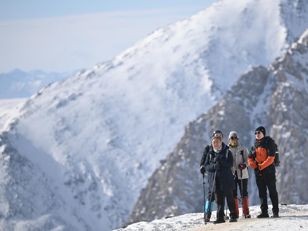 1月1日,登山爱好者在攀登岗什卡雪峰。新华社记者 齐芷玥 摄